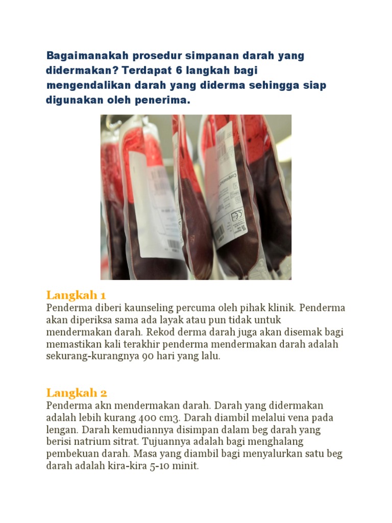 Bagaimanakah Prosedur Simpanan Darah Yang Didermakan Pdf